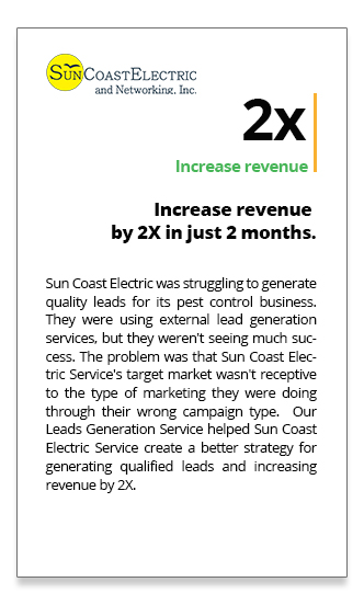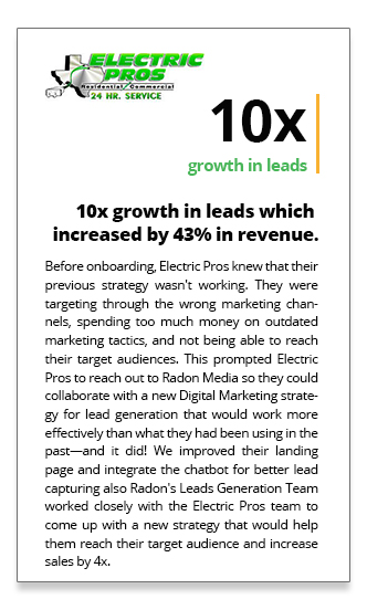 We have been providing Lead Generation Services for Electrician Service Businesses for 10+ years, and we understand their pain points.