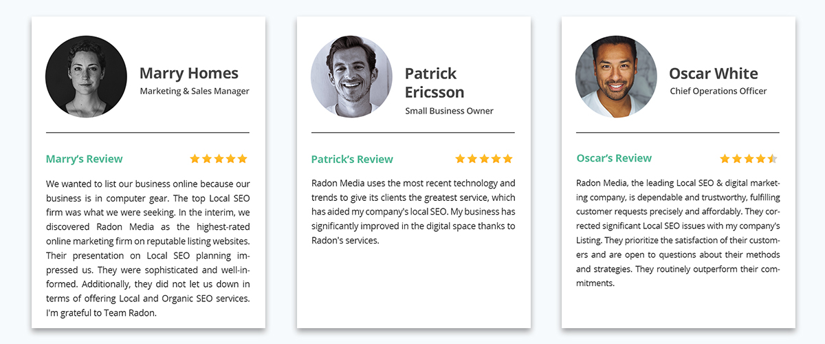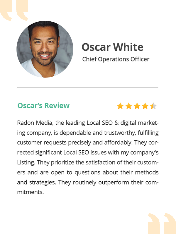 When it comes to Local SEO, Radon Media is a top-ranked Local SEO agency, dedicated to your success. Our team of expert Local SEOs brings proven Local SEO strategies & tactics to help your business not only grow website traffic but also conversions. Let’s be candid, strong organic search growth does not just happen by chance, it is the result of having a talented Local SEO Company working for you.