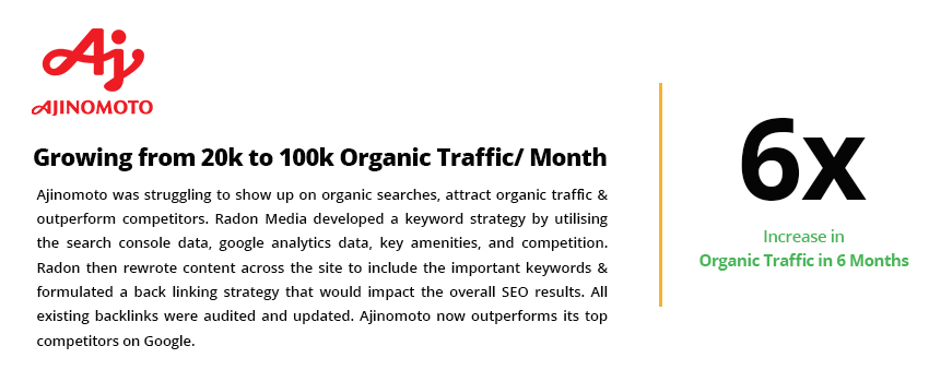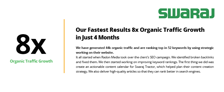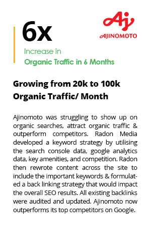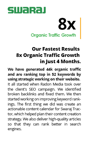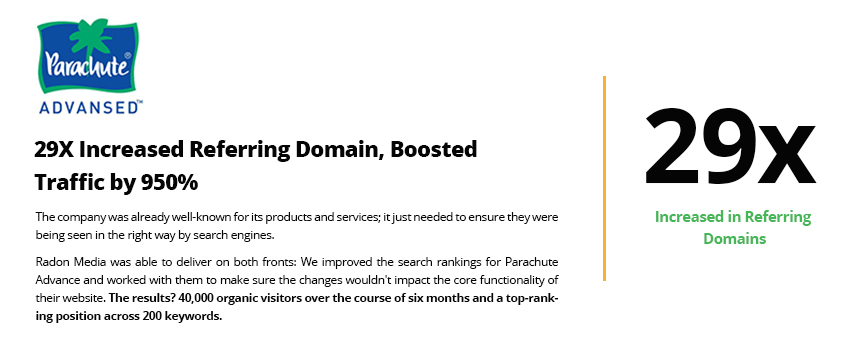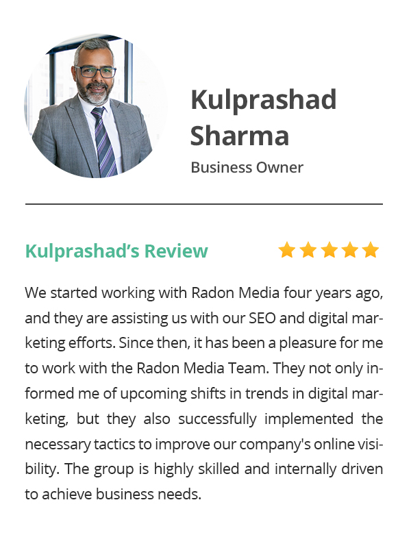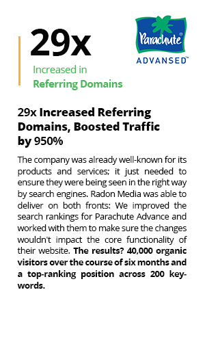 When it comes to SEO, Radon Media is a top-ranked SEO agency, dedicated to your SEO success. Our team of expert SEOs brings proven SEO strategies & tactics to help your business not only grow website traffic but also conversions. Let’s be candid, strong organic search growth does not just happen by chance, it is the result of having a talented SEO Company working for you.